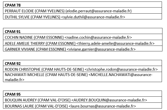 Les contacts départementaux de la CPAM